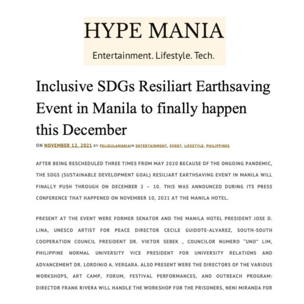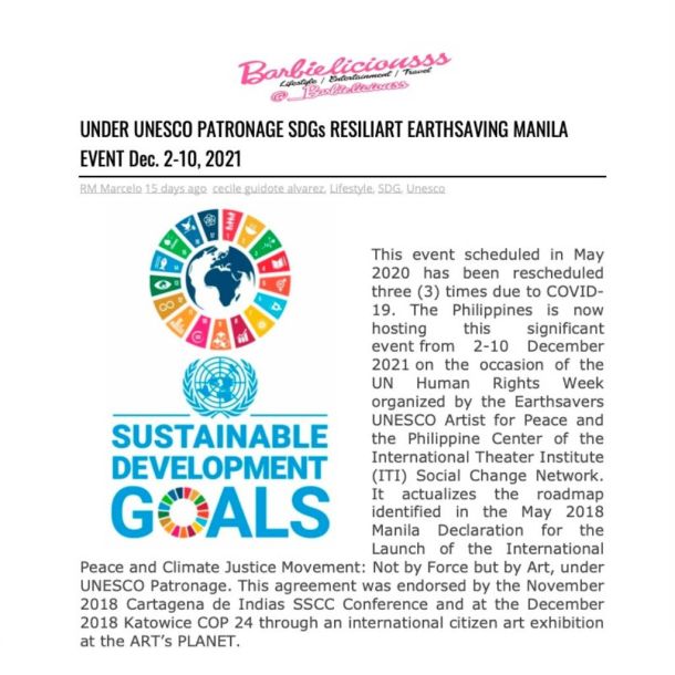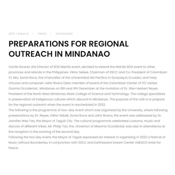This section of the website features press articles published in various newspapers and social media platforms about the Manila SDG event. The event is a global exercise with numerous partners, including UNESCO, and was originally scheduled for March 2020 but was postponed to December 2021 due to COVID-19. Following the surge of the Omicron variant, the event was divided into three parts, including a blended event, a forum, and a festival.